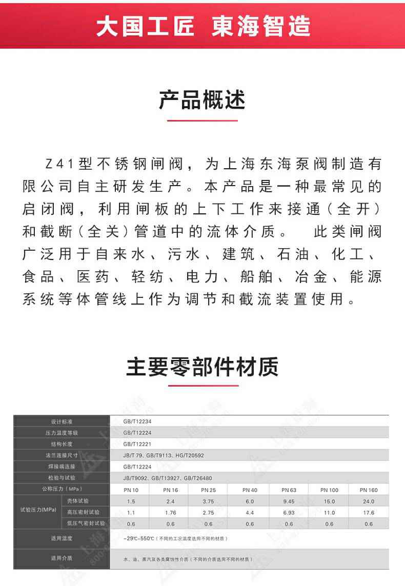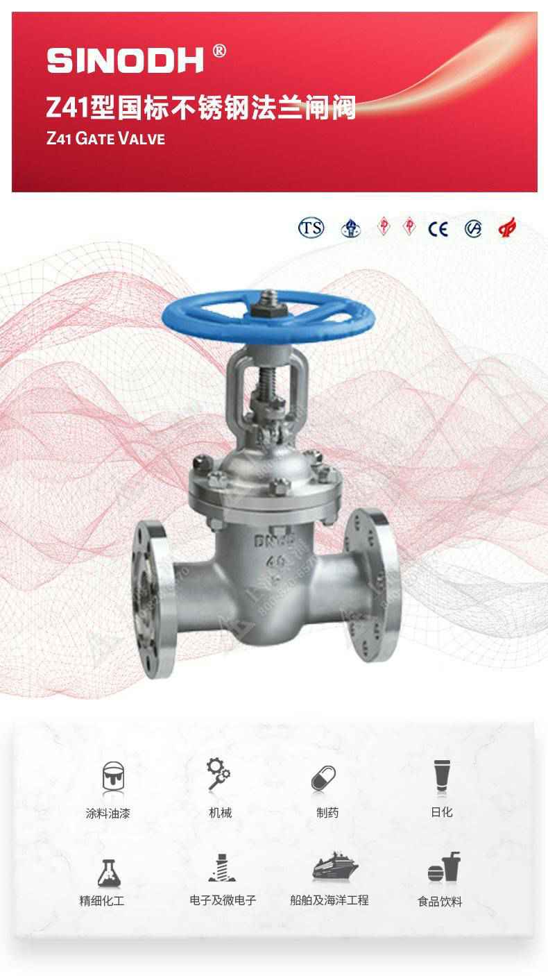 Z41型不锈钢闸阀,为开云网页版·开云页面官方网站-开云(中国)自主研发生产。本产品是一种最常见的启闭阀,利用闸板的上下工作来接通(全开)和截断(全关)管道中的流体介质。此类闸阀广泛用于自来水、污水、建筑、石油、化工、食品、医药、轻纺、电力、船舶、冶金、能源系统等体管线上作为调节和截流装置使用。